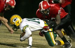 (Brandon Spencer makes a tackle – Gazette Photo)